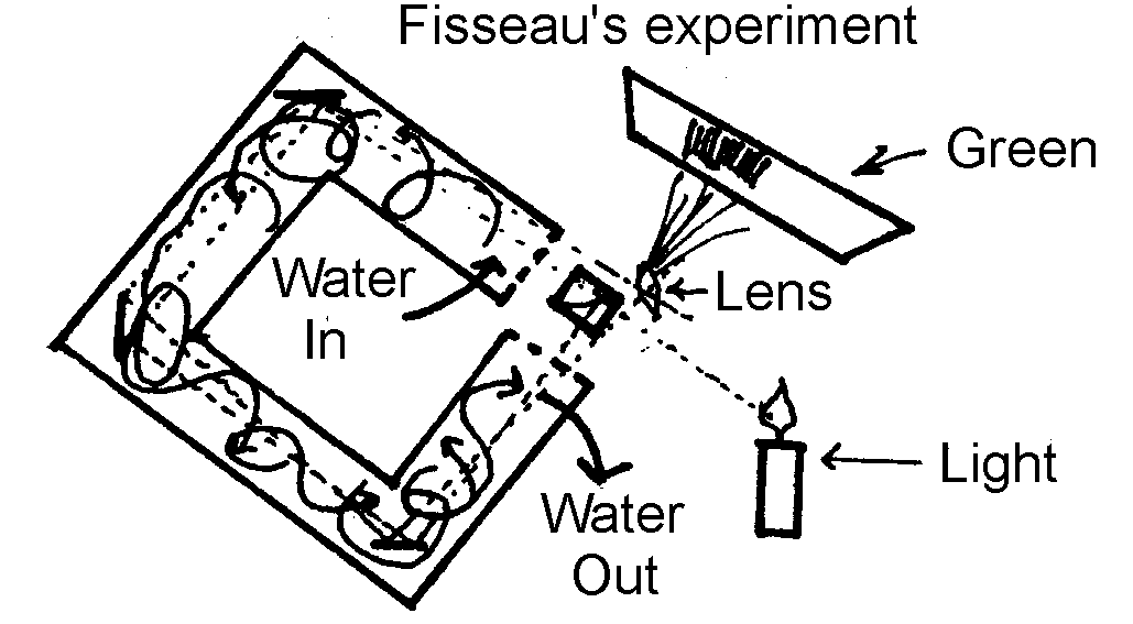 I showed Fisseau's experiment to M (who always tells the truth) and asked what he thought. He seemed to think that the pipe bent around a square was not a very good idea. He thought at any reasonable speed, the water would not flow down the center of the pipe, but would swirl around the sides, particularly near corners, and there were a lot of corners.