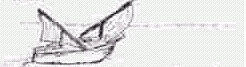 The oldest sails, we believe, were square sails. There was a fairly short vertical mast and a long horizontal spar. From the spar hung the rectangular sail. This was an excellent design for going down wind. Going across the wind, it was not very good. The wind tended to hit the side of the sail and fold it up. The first known boat that was able to beat against the wind was the lateen rig. In this rig, the mast was very short, and the spar was set at a steep angle. Thus: