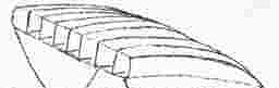Then, alas, people decided to try to win the race. Boats were built beamier. They held their masts up straighter, and generally went faster. Modern hull design calls for a hull that is sharp at the bow and broad and rounded at the stern. It "knifes in on the bow and planes off on the stern." A brief glance at the shape of the waterline shows you what they have done. Of course, it looks like a tear drop again, only now going backwards, sharp end first. No harm in that, of course; an air foil or hydro foil works backwards just as well as forwards. On the other hand, the pointed end of the hydro foil seems like a good place to put the rudder, so we will design our boat with a blunt bow and a sharp stern with the rudder acting as an extension of the stern.