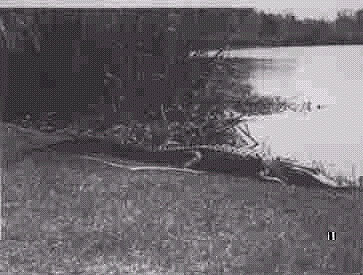 I don't know how they got to Newberry (that's Newberry Florida, not the older Newberry South Carolina) before they built the Hogtown Creek bridge, but I remember when the bridge was new. The whole family~' went fishing out there. You could sit under the bridge, where it smelled like fresh concrete and the cloth fabric of the sandbags that shored up the approach still felt like burlap, to get out of the sun. We caught a marvelous fish two feet long with a fin running the length of its belly an a fin running the length of its back. It had a serpentine way of swimming, and it didn1t put up much of a fight, for all its size.