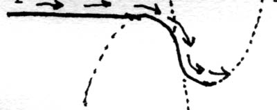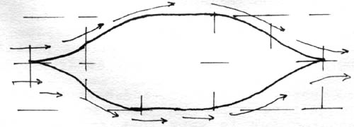 Half way down to the middle of the car, you want the air to begin to stop coming down, so as to be quite still when the car has gone past. You use the same parabola to bring the air to a stop: