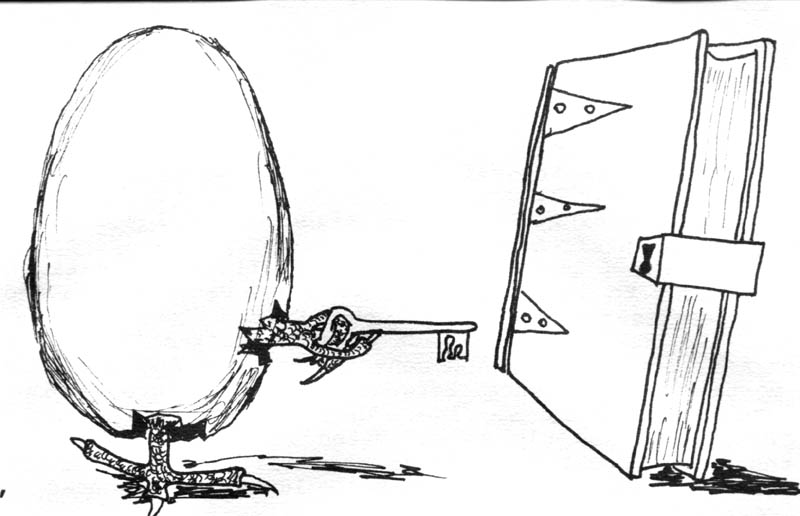 Then, on stride four, she called out, "Come back." She was talking to me. I could tell by the tone. I never did go back. But it meant more than I could say that she spoke. Because if she was talking to me, it meant I was leaving. And if I was leaving, it was by the kitchen door. And if I was leaving by the kitchen door even though it was locked, then it could be opened from the inside, even though it was locked. On stride six, I put my hand, not up to the machete but down to the door knob. It began to turn. The next thing I knew, I ran into the side of his parked car, rolled away, ran again.
