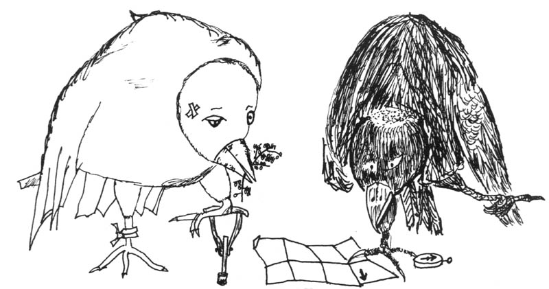 So Cooter and the sweet spirited laboratory assistant went into Moneybags' kitchen and invented a drink consisting of 1 teaspoon of cherry juice, 1 drop of blue food coloring, 1 tablespoon of cane sugar and a tablespoon on lime juice. It was stirred until the sugar dissolved. Then it took a cup of carbonated water, two ounces of tequila and two scoops of vanilla ice cream. They called the resulting grey and white thing 'TTequila Nockingbird."